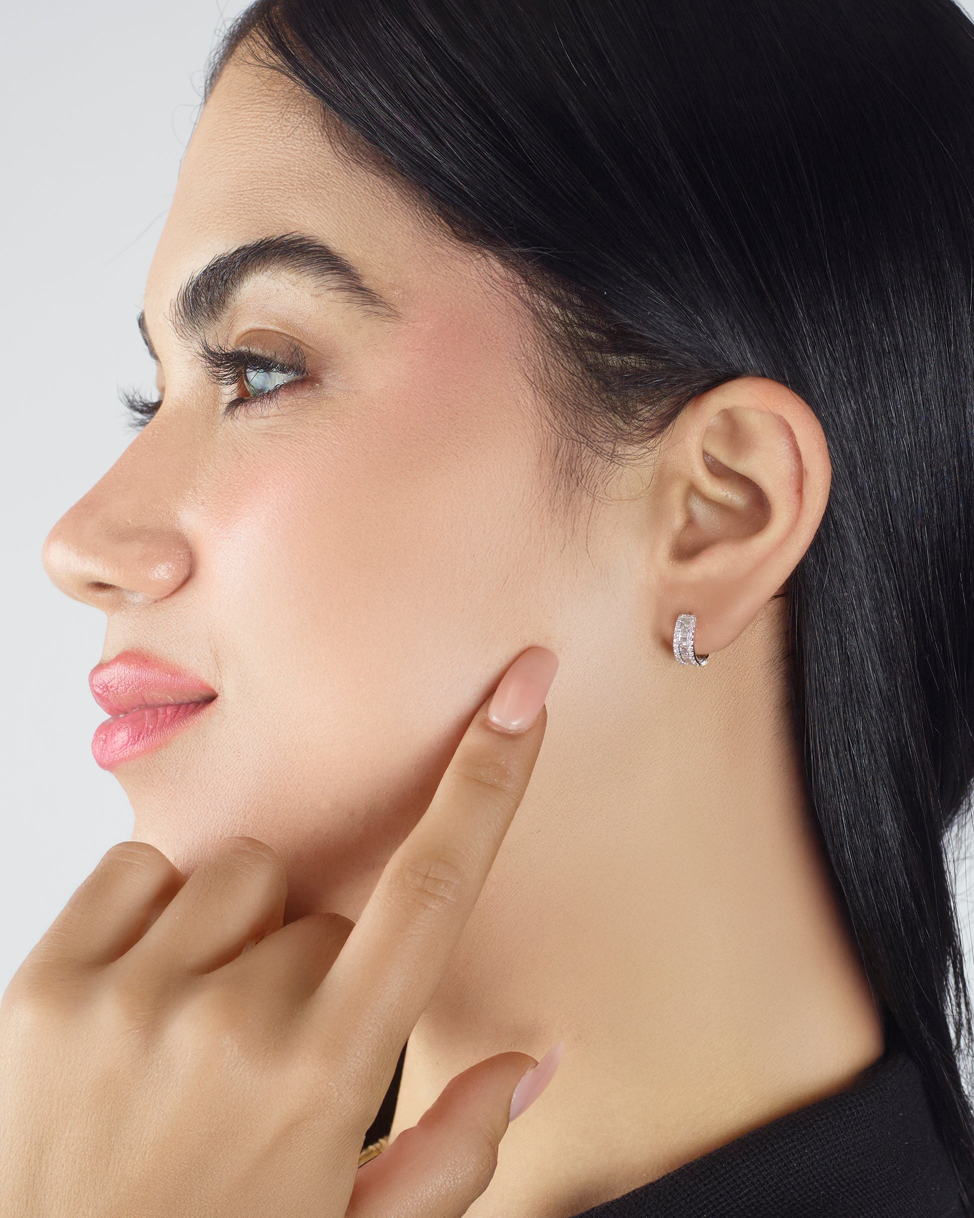 The Oscar Whisper Hoops speak in shimmer. Sleek and polished with a subtle pavé glow, they’re made for effortless shine that stays on your mind.