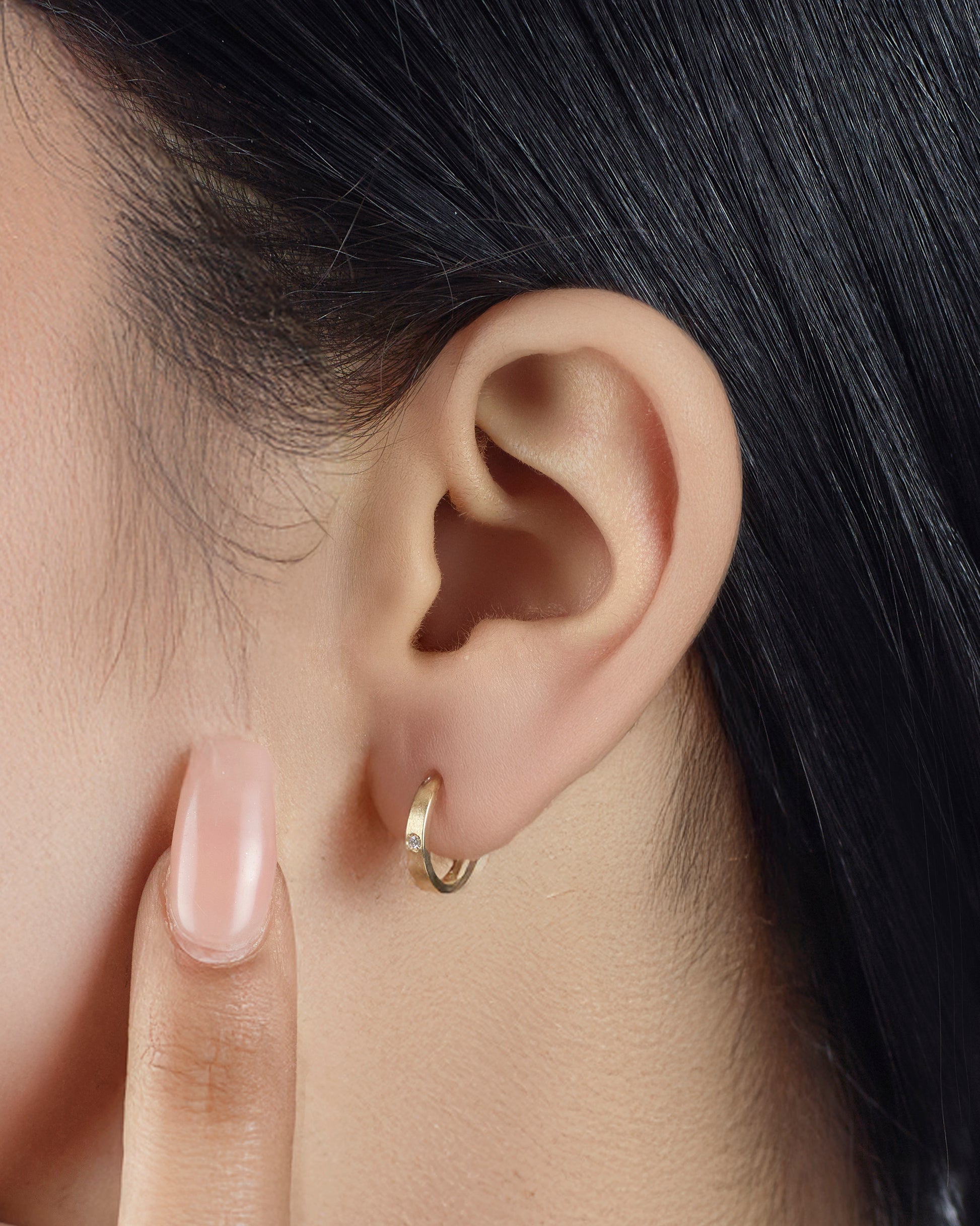 - Setting: Subtle pavé on rounded hoop silhouette