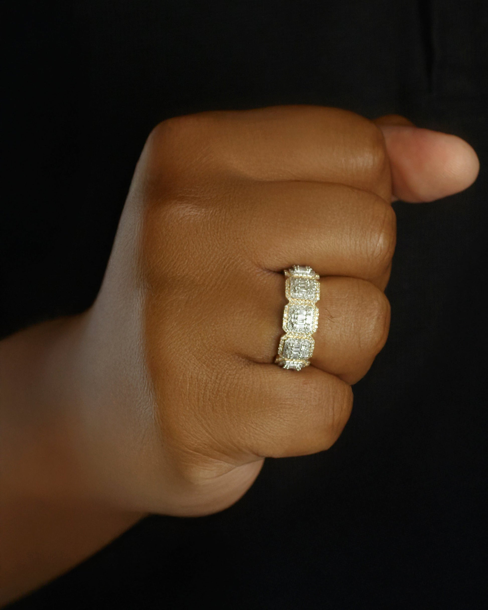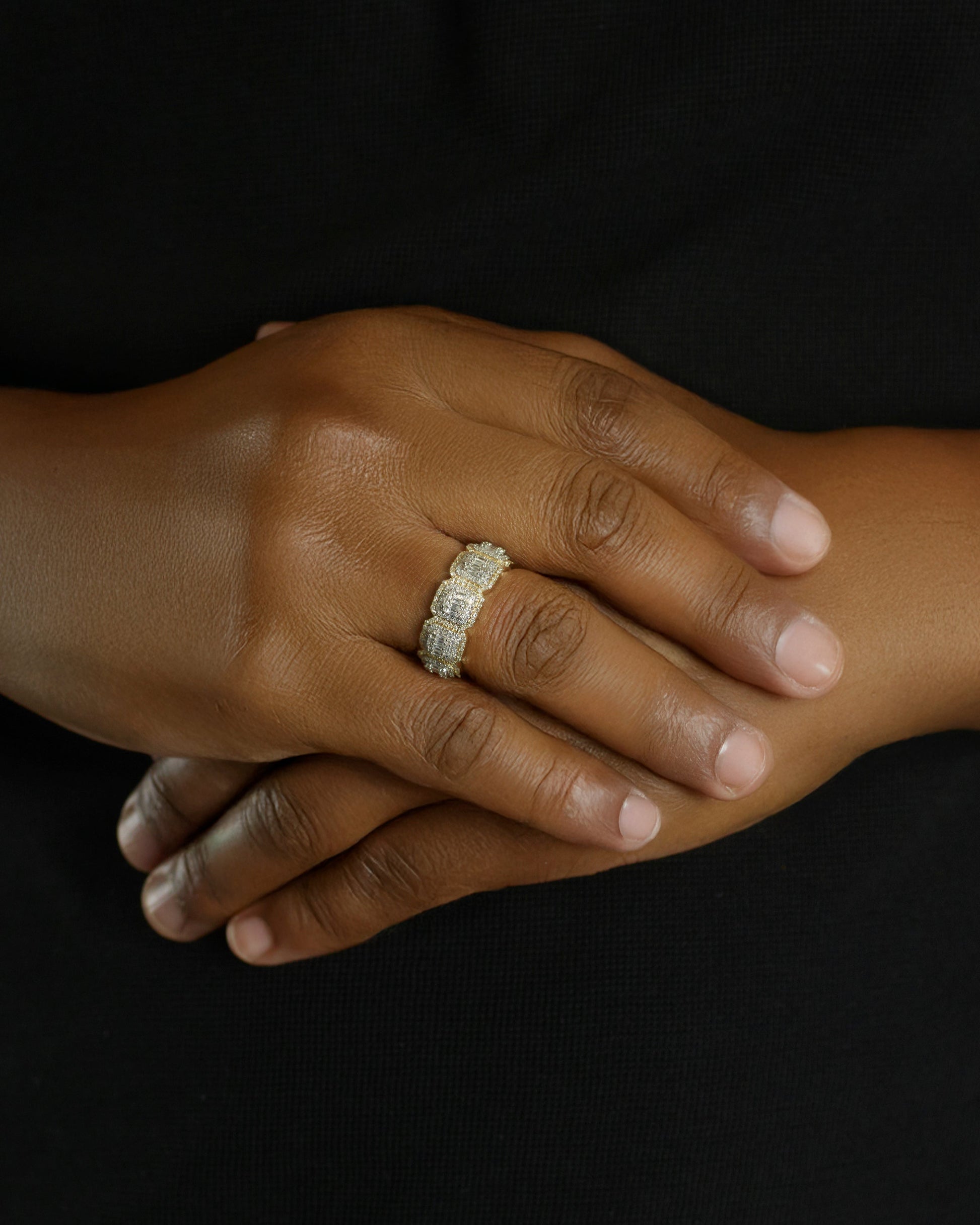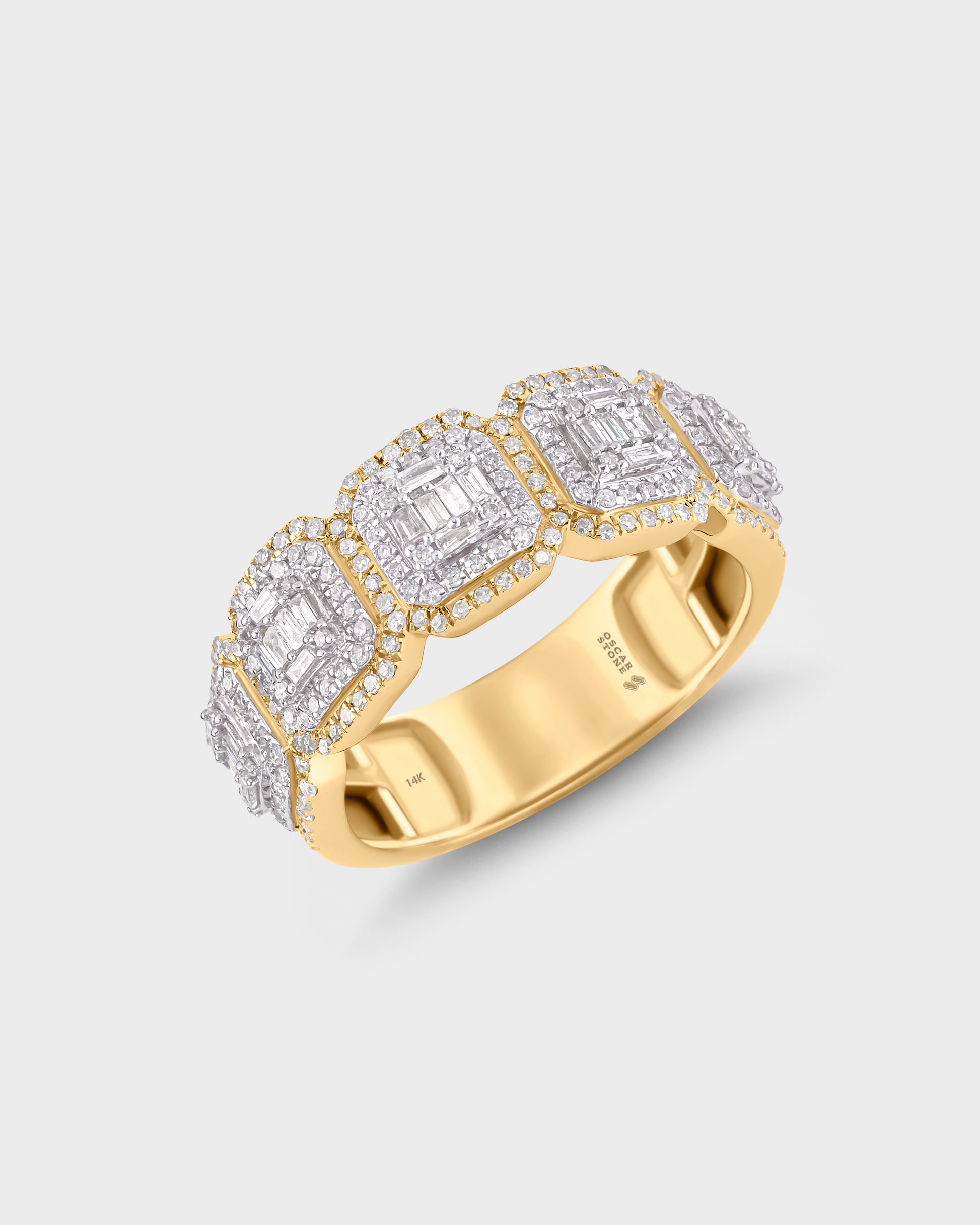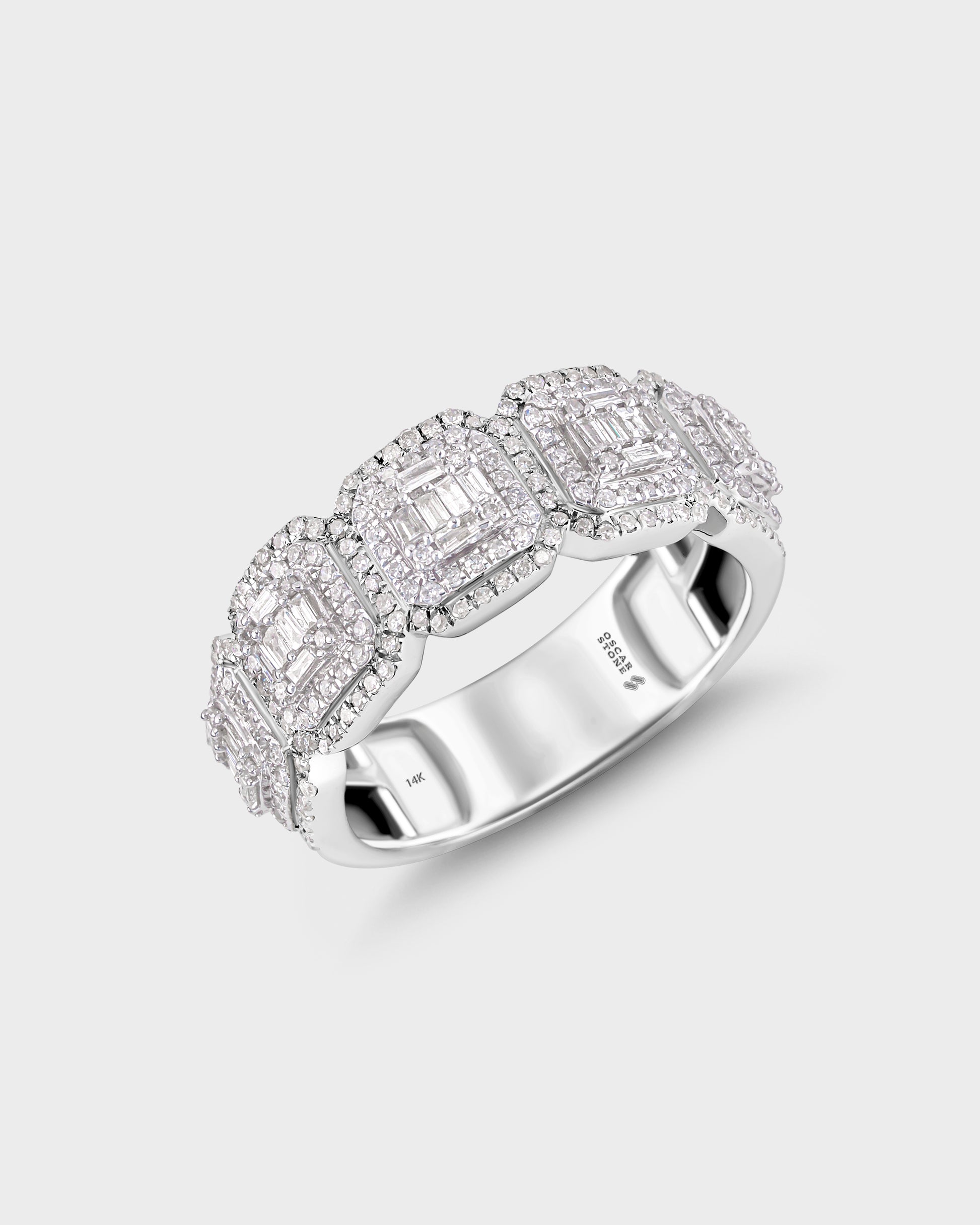 The Oscar Baguette Band makes bold symmetry feel effortless. Sleek lines, structured sparkle, and a silhouette that hits different from every angle.