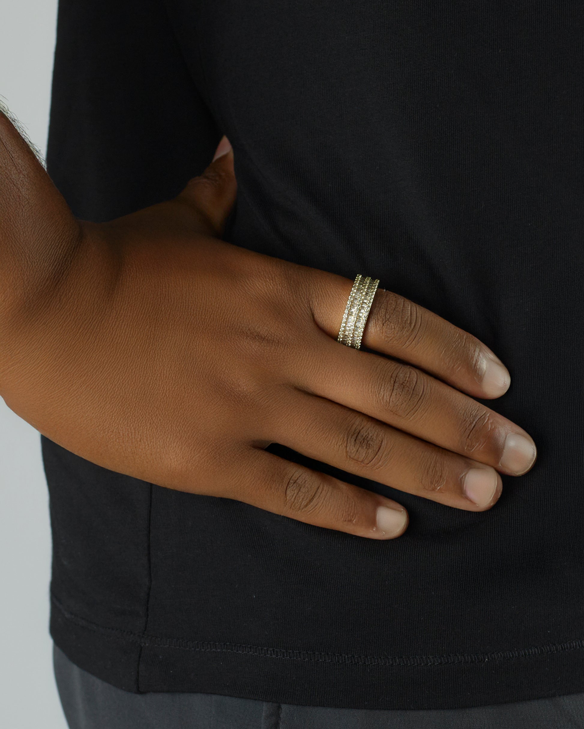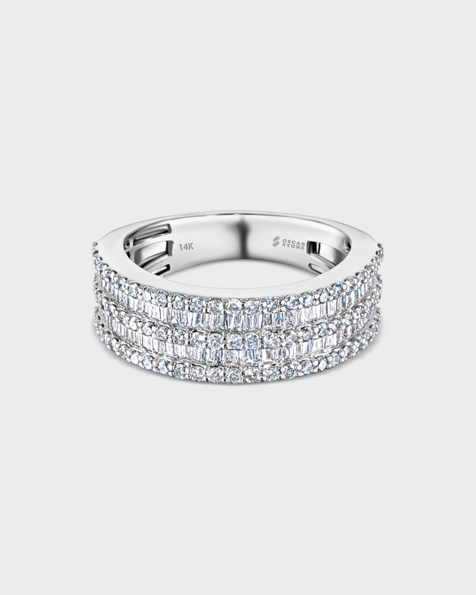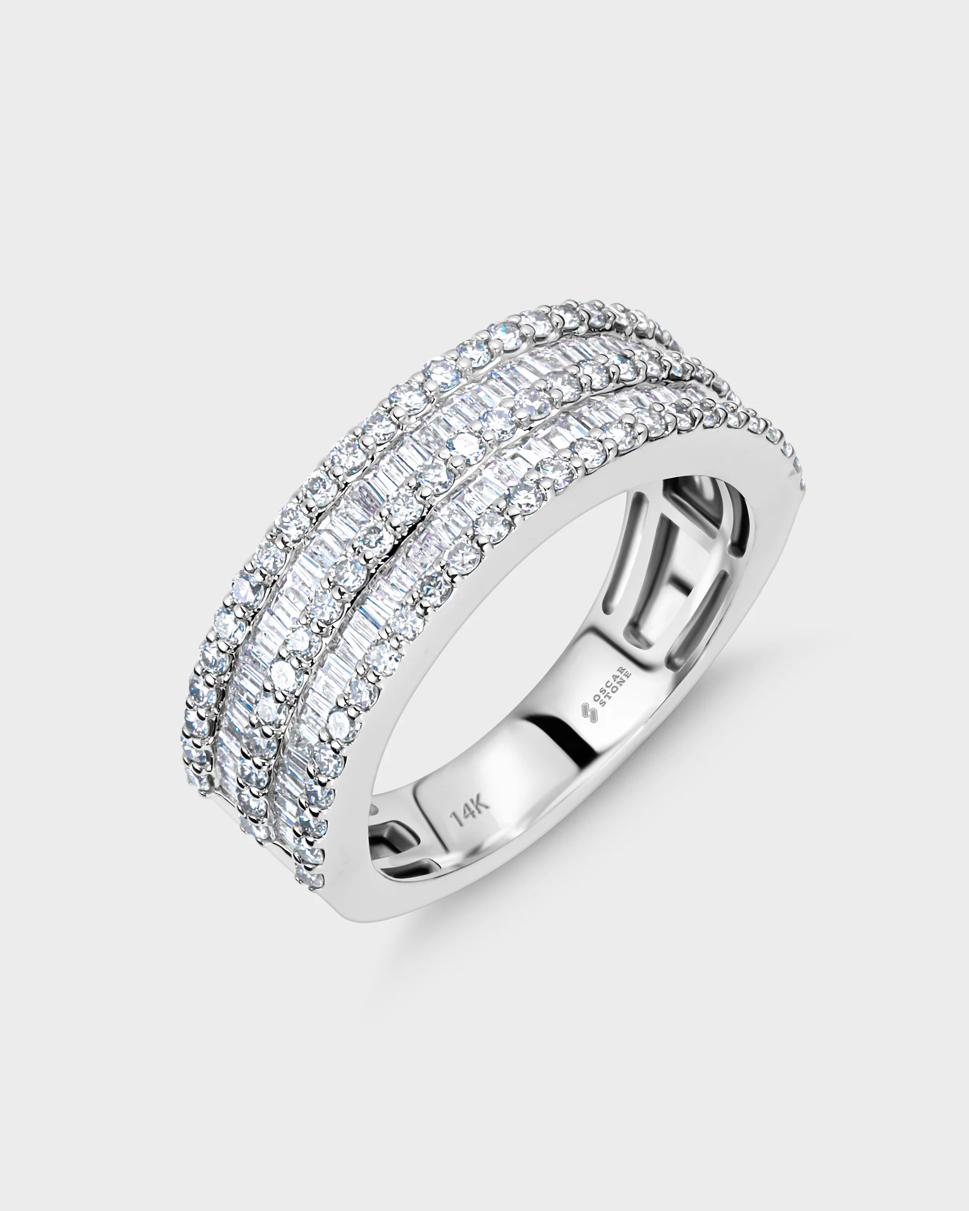 Realza tu estilo con este elegante anillo de oro amarillo de 10 quilates con banda de talla baguette. Con un peso de 9,1 gramos, esta impresionante pieza está adornada con 1,74 quilates de elegantes diamantes de talla baguette, lo que ofrece un diseño atemporal que irradia sofisticación y estilo.