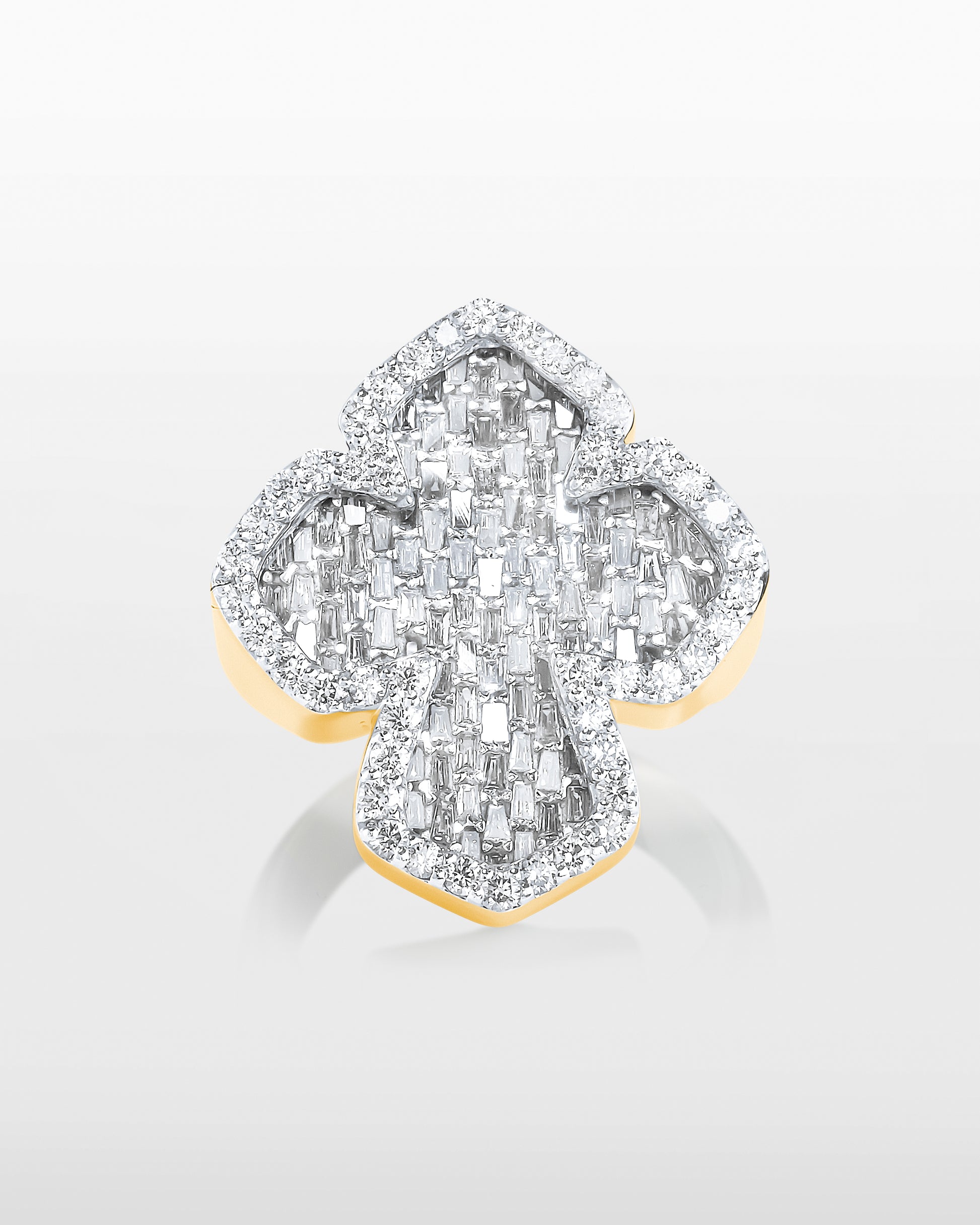 Eleve su elegancia con nuestro impresionante anillo de cruz baguette de 10k, una verdadera obra maestra que pesa 14,0 gramos y presenta un impresionante peso de 1,69 quilates. de brillantes diamantes de talla baguette. Este exquisito anillo combina a la perfección un diseño moderno con una sofisticación atemporal, lo que lo convierte en un artículo imprescindible para cualquier colección de joyas.